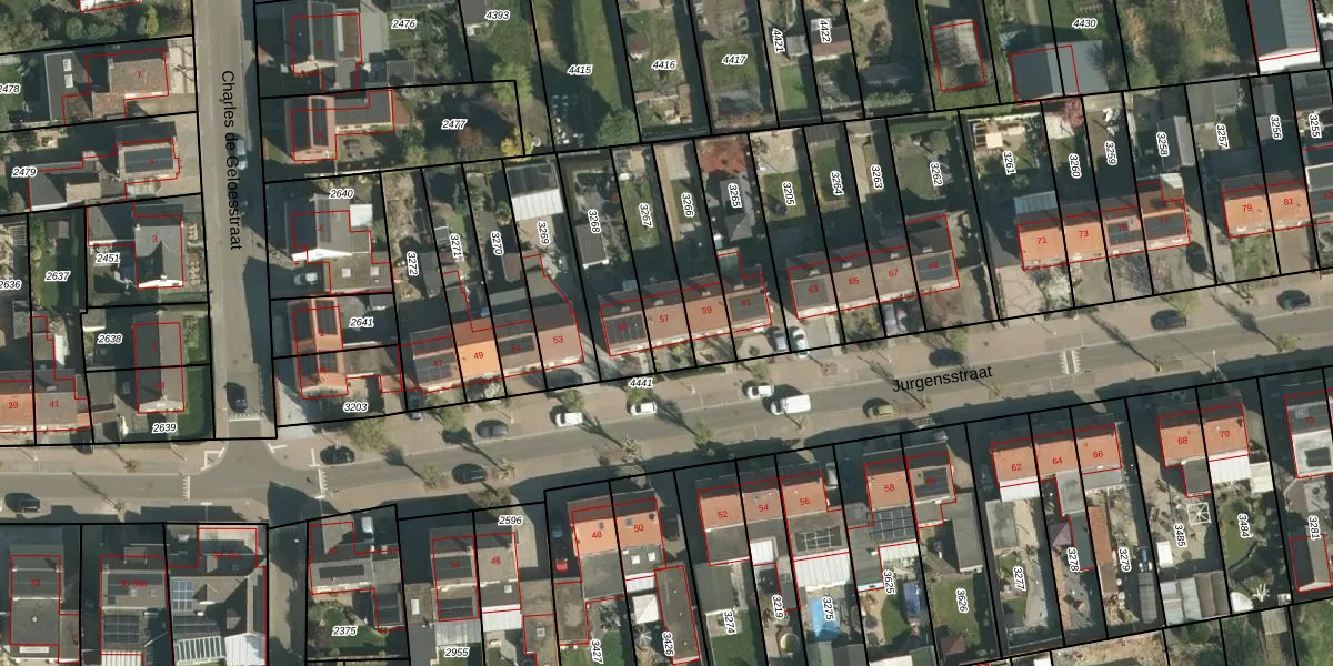 Gebruik de zoekbalk of klik op een perceel voor informatie over de adressen binnen dit perceel.