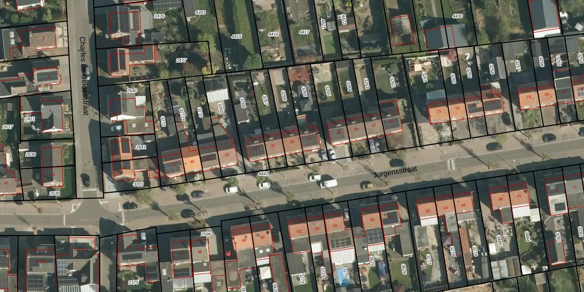 Het perceel waarop Jurgensstraat 59 staat heeft een oppervlakte van 213 m². Dit is een middelgroot perceel. De perceeloppervlakte wordt geregistreerd door het Kadaster. Gedetailleerde informatie over de maten van dit perceel kunt u vinden in het rapport Kadastrale kaart met maatvoering van Jurgensstraat 59.