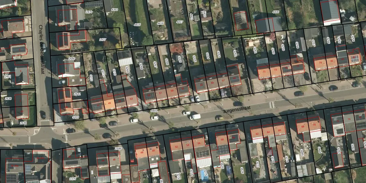 Gebruik de zoekbalk of klik op een perceel voor informatie over de adressen binnen dit perceel.