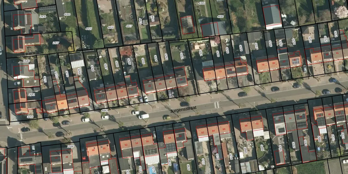 Jurgensstraat 67 is gelegen op kadastraal perceel ELO00B3263. Deze kadastrale aanduiding is uniek en wordt gebruikt door het Kadaster om eigendomsrechten en andere zakelijke rechten vast te leggen. Het perceel maakt onderdeel uit van de kadastrale gemeente Elsloo.