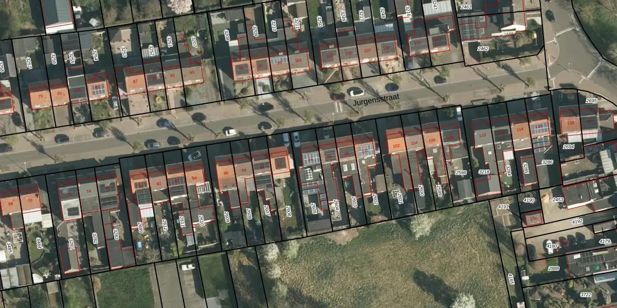 Jurgensstraat 94 is gelegen op kadastraal perceel ELO00B2605. Deze kadastrale aanduiding is uniek en wordt gebruikt door het Kadaster om eigendomsrechten en andere zakelijke rechten vast te leggen. Het perceel maakt onderdeel uit van de kadastrale gemeente Elsloo.