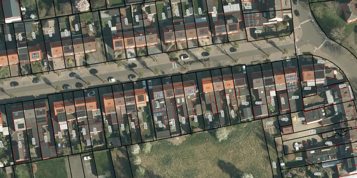 Het perceel waarop Jurgensstraat 98 staat heeft een oppervlakte van 199 m². Dit is een middelgroot perceel. De perceeloppervlakte wordt geregistreerd door het Kadaster. Gedetailleerde informatie over de maten van dit perceel kunt u vinden in het rapport Kadastrale kaart met maatvoering van Jurgensstraat 98.