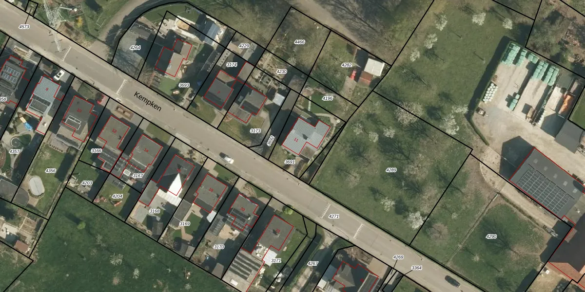 Het perceel waarop Kempken 11 staat heeft een oppervlakte van 387 m². Dit is een groot perceel. De perceeloppervlakte wordt geregistreerd door het Kadaster. Gedetailleerde informatie over de maten van dit perceel kunt u vinden in het rapport Kadastrale kaart met maatvoering van Kempken 11.