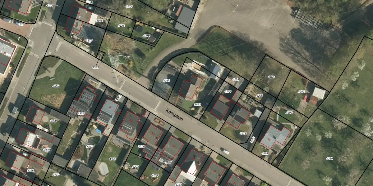 Het perceel waarop Kempken 5 staat heeft een oppervlakte van 542 m². Dit is een groot perceel. De perceeloppervlakte wordt geregistreerd door het Kadaster. Gedetailleerde informatie over de maten van dit perceel kunt u vinden in het rapport Kadastrale kaart met maatvoering van Kempken 5.