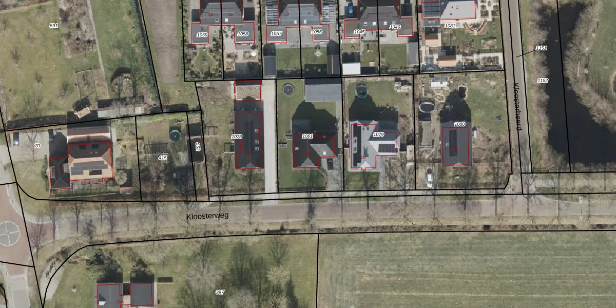 Kloosterweg 1-B is gelegen op kadastraal perceel MKG00F1061. Deze kadastrale aanduiding is uniek en wordt gebruikt door het Kadaster om eigendomsrechten en andere zakelijke rechten vast te leggen. Het perceel maakt onderdeel uit van de kadastrale gemeente Makkinga.