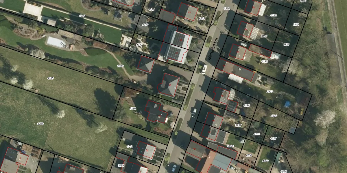 Het perceel waarop Mergelakker 35 staat heeft een oppervlakte van 2580 m². Dit is een zeer groot perceel. De perceeloppervlakte wordt geregistreerd door het Kadaster. Gedetailleerde informatie over de maten van dit perceel kunt u vinden in het rapport Kadastrale kaart met maatvoering van Mergelakker 35.