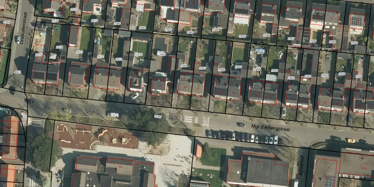 Het perceel waarop Mgr d'Arbergstraat 15 staat heeft een oppervlakte van 389 m². Dit is een groot perceel. De perceeloppervlakte wordt geregistreerd door het Kadaster. Gedetailleerde informatie over de maten van dit perceel kunt u vinden in het rapport Kadastrale kaart met maatvoering van Mgr d'Arbergstraat 15.