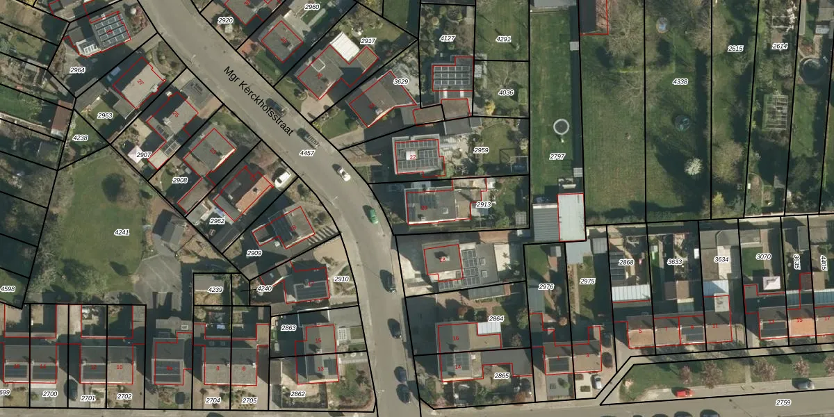 Mgr Kerckhofsstraat 20 is gelegen op kadastraal perceel ELO00B2913. Deze kadastrale aanduiding is uniek en wordt gebruikt door het Kadaster om eigendomsrechten en andere zakelijke rechten vast te leggen. Het perceel maakt onderdeel uit van de kadastrale gemeente Elsloo.