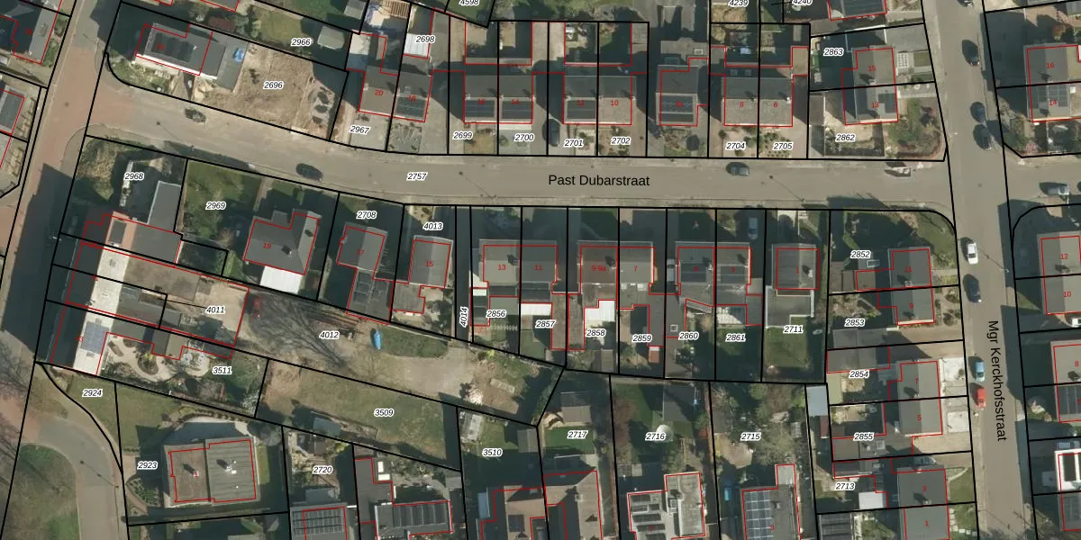 Gebruik de zoekbalk of klik op een perceel voor informatie over de adressen binnen dit perceel.