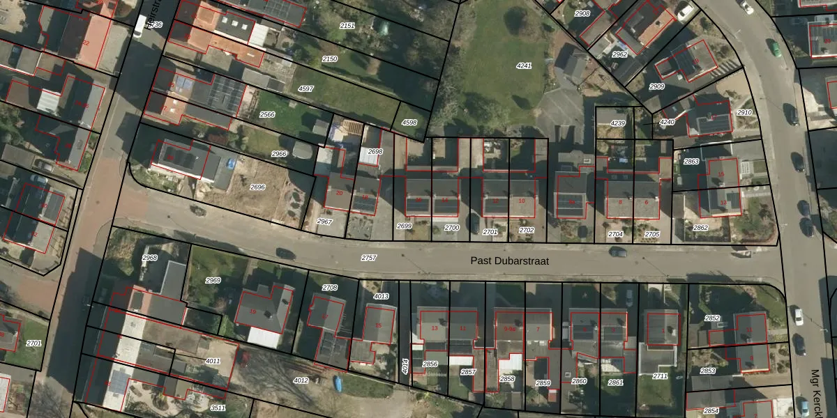 Gebruik de zoekbalk of klik op een perceel voor informatie over de adressen binnen dit perceel.