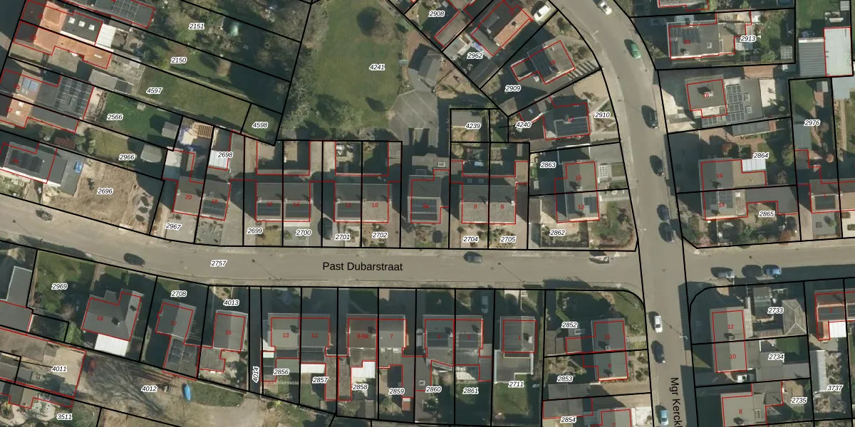 Gebruik de zoekbalk of klik op een perceel voor informatie over de adressen binnen dit perceel.