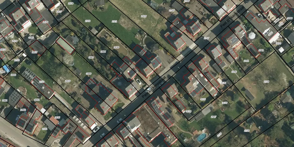 Het perceel waarop Past Erckensstraat 20 staat heeft een oppervlakte van 495 m². Dit is een groot perceel. De perceeloppervlakte wordt geregistreerd door het Kadaster. Gedetailleerde informatie over de maten van dit perceel kunt u vinden in het rapport Kadastrale kaart met maatvoering van Past Erckensstraat 20.