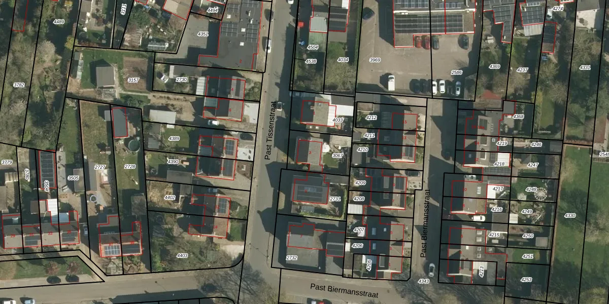 Past Tissenstraat 3 is gelegen op kadastraal perceel ELO00B3067. Deze kadastrale aanduiding is uniek en wordt gebruikt door het Kadaster om eigendomsrechten en andere zakelijke rechten vast te leggen. Het perceel maakt onderdeel uit van de kadastrale gemeente Elsloo.