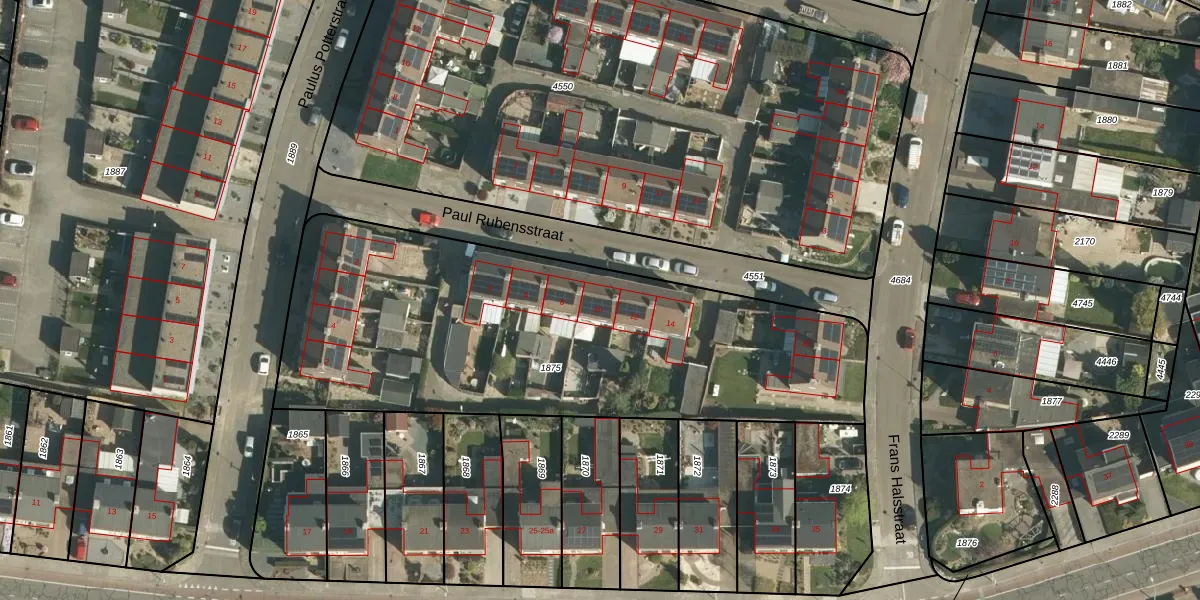 Het perceel waarop Paul Rubensstraat 10 staat heeft een oppervlakte van 2456 m². Dit is een zeer groot perceel. De perceeloppervlakte wordt geregistreerd door het Kadaster. Gedetailleerde informatie over de maten van dit perceel kunt u vinden in het rapport Kadastrale kaart met maatvoering van Paul Rubensstraat 10.