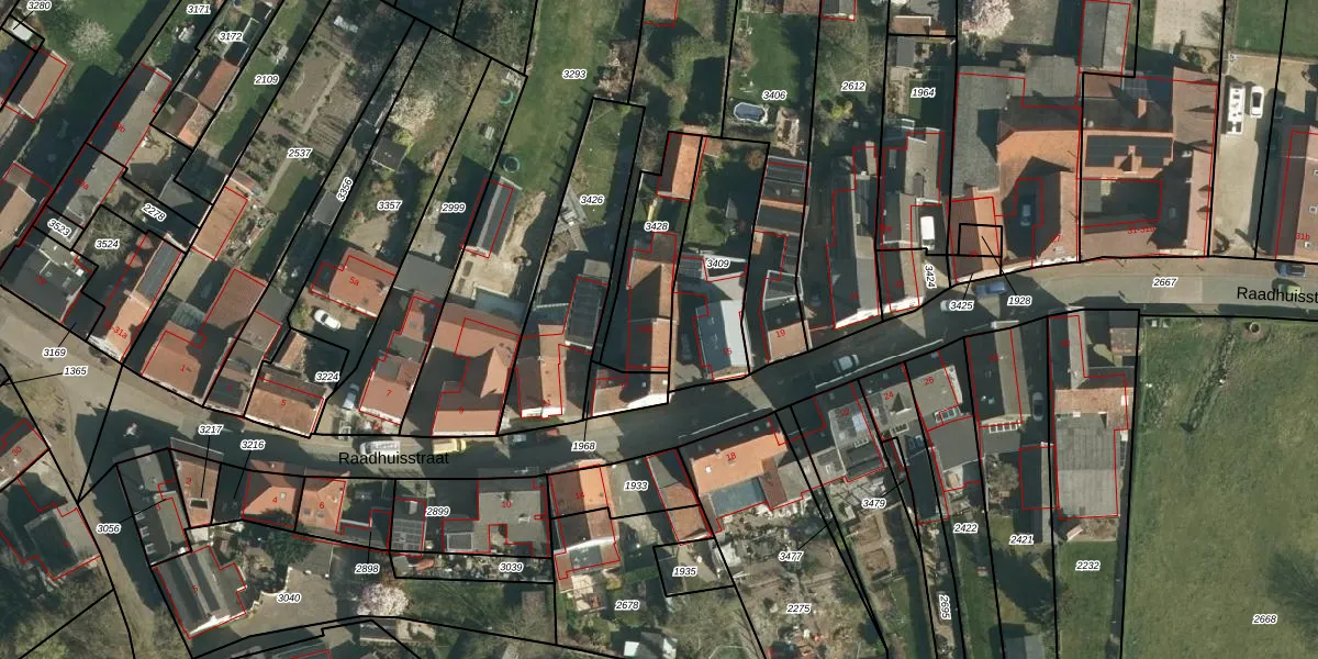 Raadhuisstraat 13-a is gelegen op kadastraal perceel ELO00C3428. Deze kadastrale aanduiding is uniek en wordt gebruikt door het Kadaster om eigendomsrechten en andere zakelijke rechten vast te leggen. Het perceel maakt onderdeel uit van de kadastrale gemeente Elsloo.