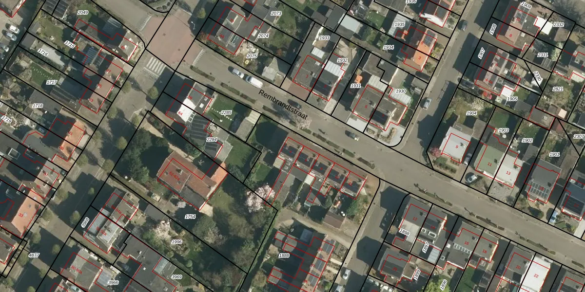 Het perceel waarop Rembrandtstraat 4 staat heeft een oppervlakte van 2460 m². Dit is een zeer groot perceel. De perceeloppervlakte wordt geregistreerd door het Kadaster. Gedetailleerde informatie over de maten van dit perceel kunt u vinden in het rapport Kadastrale kaart met maatvoering van Rembrandtstraat 4.