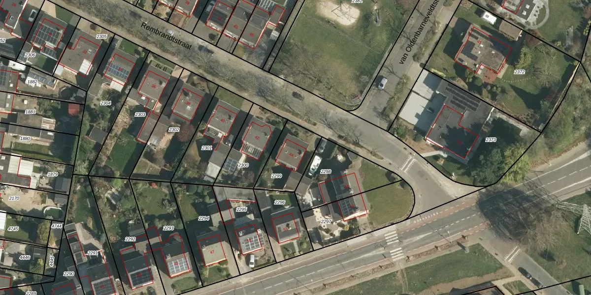 Rembrandtstraat 44 is gelegen op kadastraal perceel ELO00A2299. Deze kadastrale aanduiding is uniek en wordt gebruikt door het Kadaster om eigendomsrechten en andere zakelijke rechten vast te leggen. Het perceel maakt onderdeel uit van de kadastrale gemeente Elsloo.