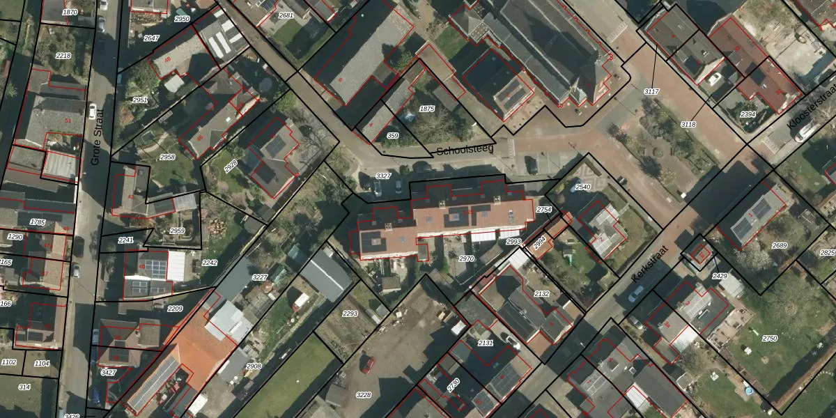 Het perceel waarop Schoolsteeg 17 staat heeft een oppervlakte van 1060 m². Dit is een zeer groot perceel. De perceeloppervlakte wordt geregistreerd door het Kadaster. Gedetailleerde informatie over de maten van dit perceel kunt u vinden in het rapport Kadastrale kaart met maatvoering van Schoolsteeg 17.