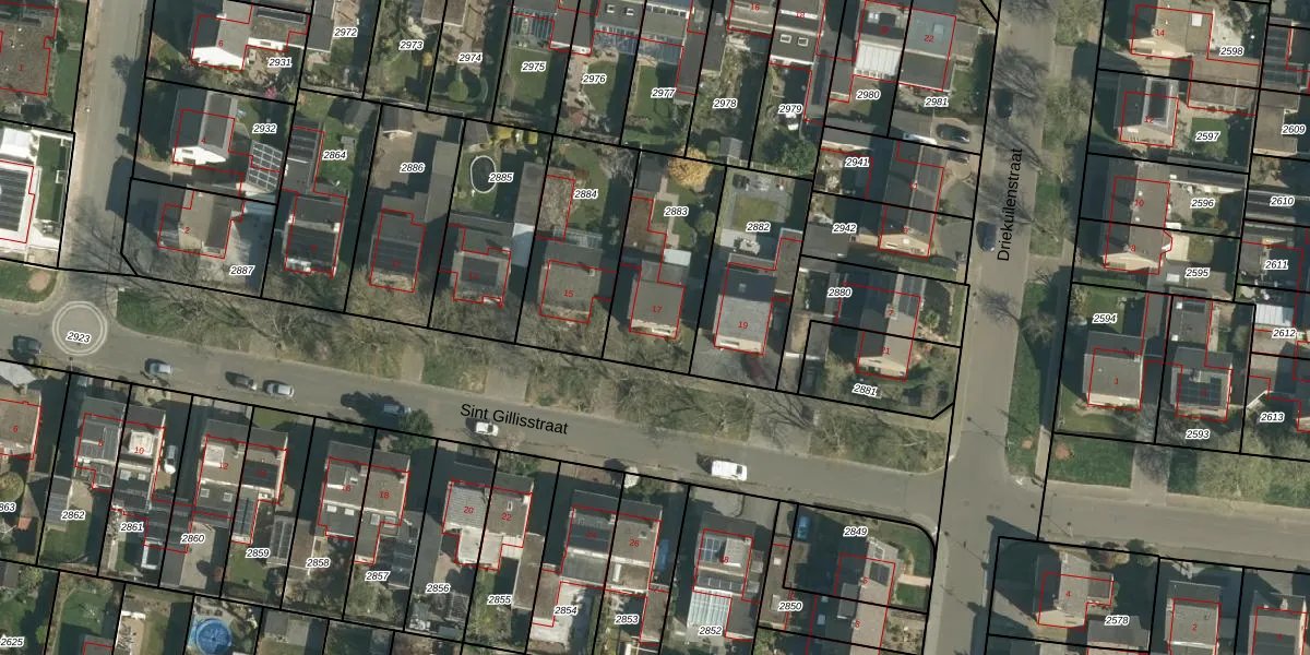 Gebruik de zoekbalk of klik op een perceel voor informatie over de adressen binnen dit perceel.