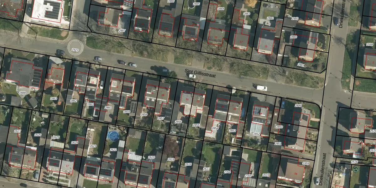 Gebruik de zoekbalk of klik op een perceel voor informatie over de adressen binnen dit perceel.