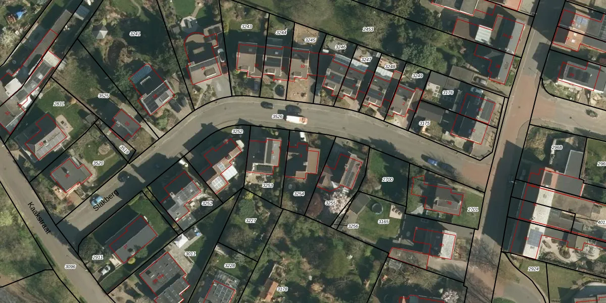 Gebruik de zoekbalk of klik op een perceel voor informatie over de adressen binnen dit perceel.