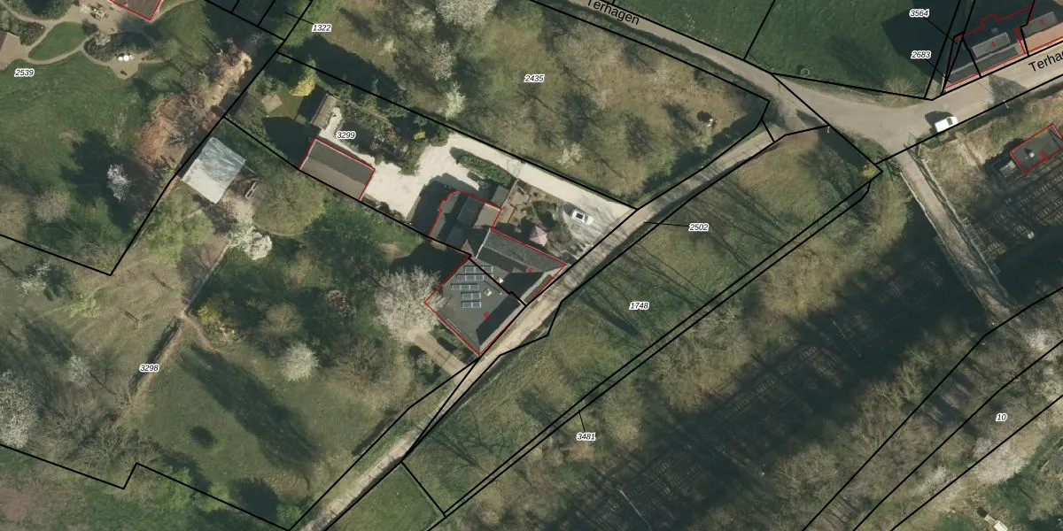 Het perceel waarop Terhagen 8 staat heeft een oppervlakte van 1315 m². Dit is een zeer groot perceel. De perceeloppervlakte wordt geregistreerd door het Kadaster. Gedetailleerde informatie over de maten van dit perceel kunt u vinden in het rapport Kadastrale kaart met maatvoering van Terhagen 8.