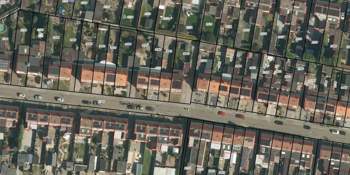 Gebruik de zoekbalk of klik op een perceel voor informatie over de adressen binnen dit perceel.