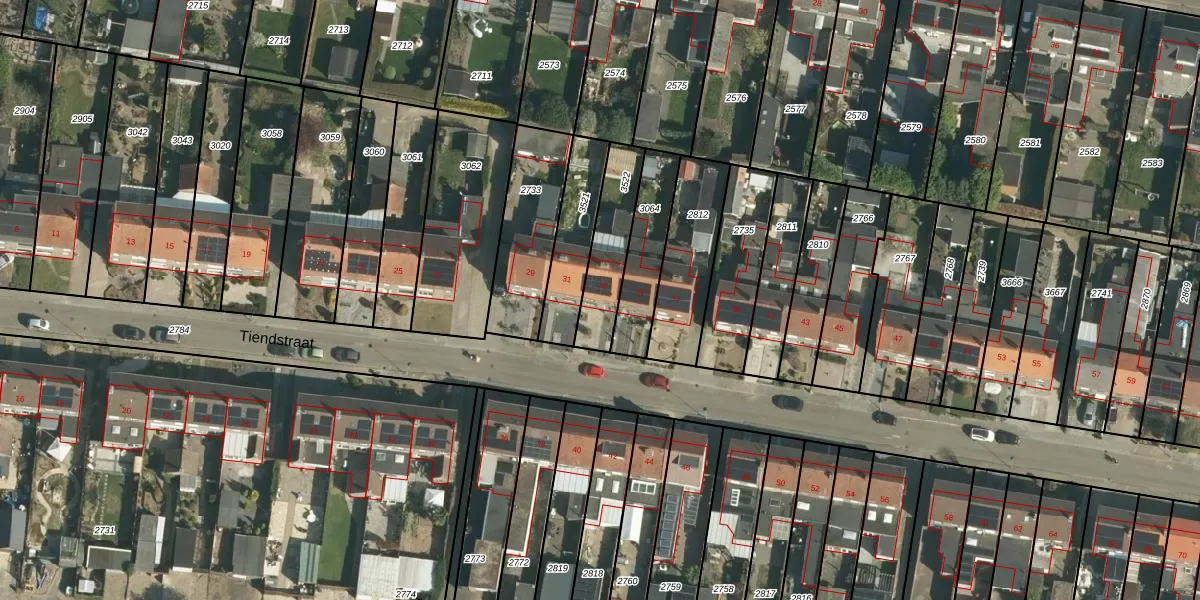 Het perceel waarop Tiendstraat 33 staat heeft een oppervlakte van 213 m². Dit is een middelgroot perceel. De perceeloppervlakte wordt geregistreerd door het Kadaster. Gedetailleerde informatie over de maten van dit perceel kunt u vinden in het rapport Kadastrale kaart met maatvoering van Tiendstraat 33.