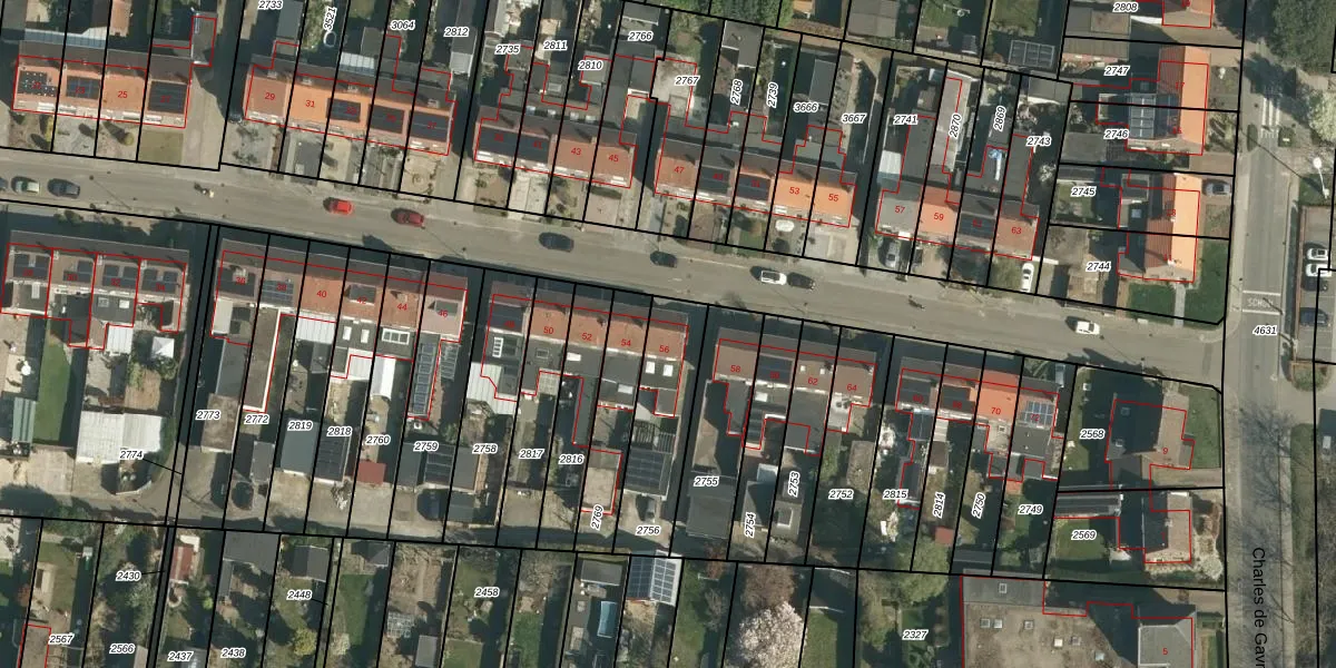 Gebruik de zoekbalk of klik op een perceel voor informatie over de adressen binnen dit perceel.
