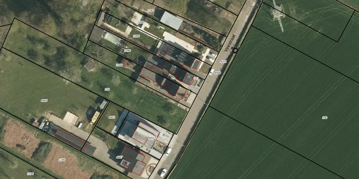 Veestraat 26 is gelegen op kadastraal perceel ELO00B2266. Deze kadastrale aanduiding is uniek en wordt gebruikt door het Kadaster om eigendomsrechten en andere zakelijke rechten vast te leggen. Het perceel maakt onderdeel uit van de kadastrale gemeente Elsloo.
