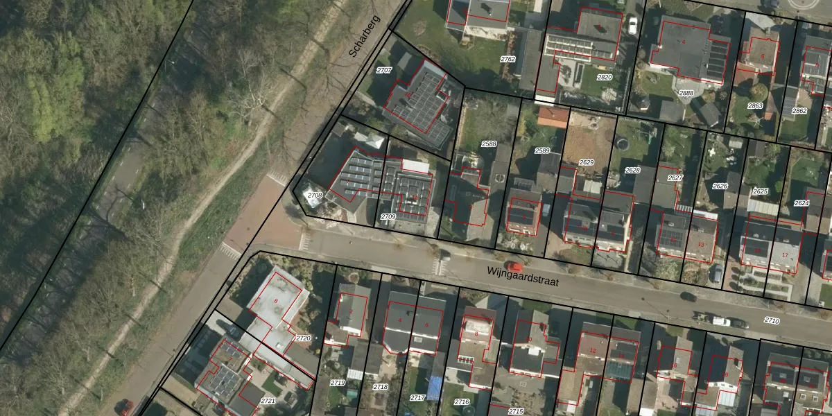 Gebruik de zoekbalk of klik op een perceel voor informatie over de adressen binnen dit perceel.