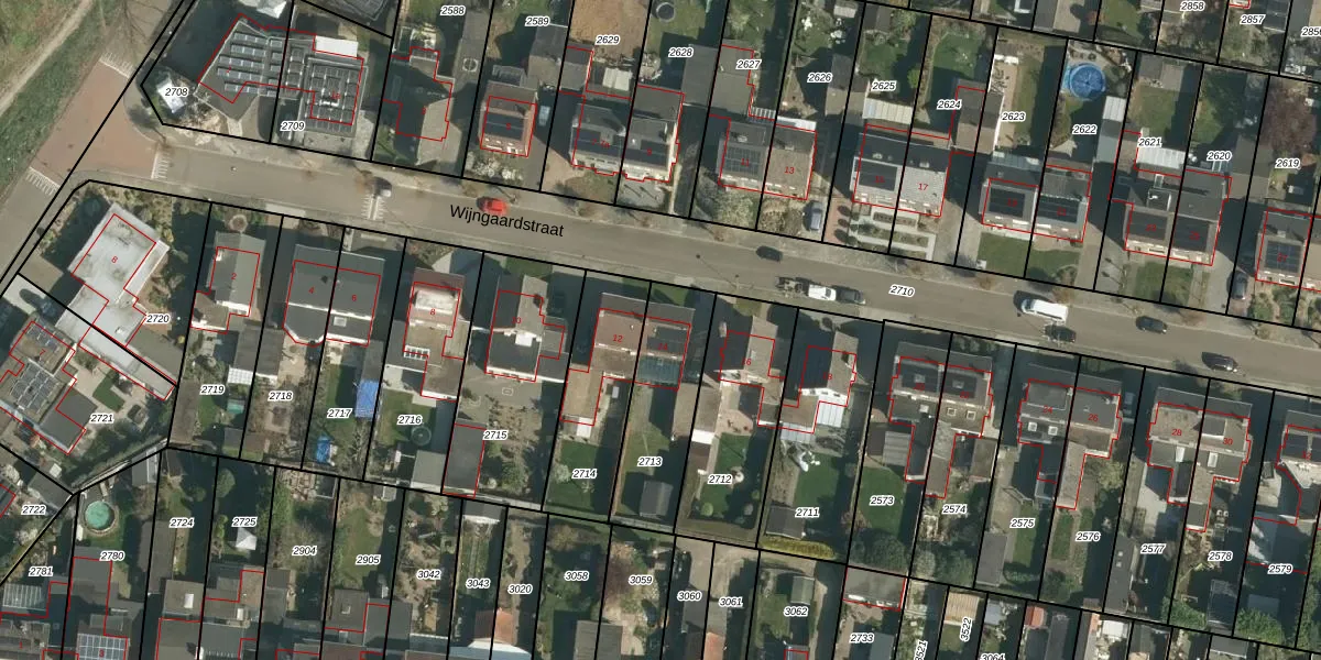 Wijngaardstraat 14 is gelegen op kadastraal perceel ELO00C2713. Deze kadastrale aanduiding is uniek en wordt gebruikt door het Kadaster om eigendomsrechten en andere zakelijke rechten vast te leggen. Het perceel maakt onderdeel uit van de kadastrale gemeente Elsloo.