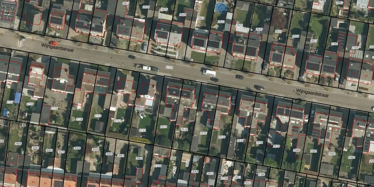 Het perceel waarop Wijngaardstraat 22 staat heeft een oppervlakte van 374 m². Dit is een groot perceel. De perceeloppervlakte wordt geregistreerd door het Kadaster. Gedetailleerde informatie over de maten van dit perceel kunt u vinden in het rapport Kadastrale kaart met maatvoering van Wijngaardstraat 22.