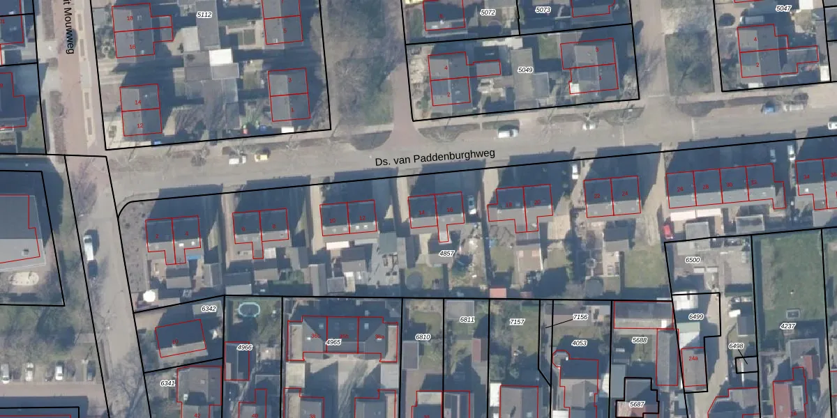 Het perceel waarop Ds. van Paddenburghweg 14 staat heeft een oppervlakte van 5090 m². Dit is een zeer groot perceel. De perceeloppervlakte wordt geregistreerd door het Kadaster. Gedetailleerde informatie over de maten van dit perceel kunt u vinden in het rapport Kadastrale kaart met maatvoering van Ds. van Paddenburghweg 14.