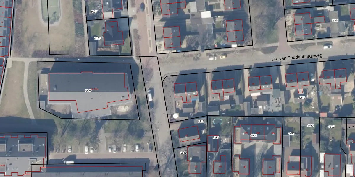 Het perceel waarop Ds. van Paddenburghweg 2 staat heeft een oppervlakte van 5090 m². Dit is een zeer groot perceel. De perceeloppervlakte wordt geregistreerd door het Kadaster. Gedetailleerde informatie over de maten van dit perceel kunt u vinden in het rapport Kadastrale kaart met maatvoering van Ds. van Paddenburghweg 2.