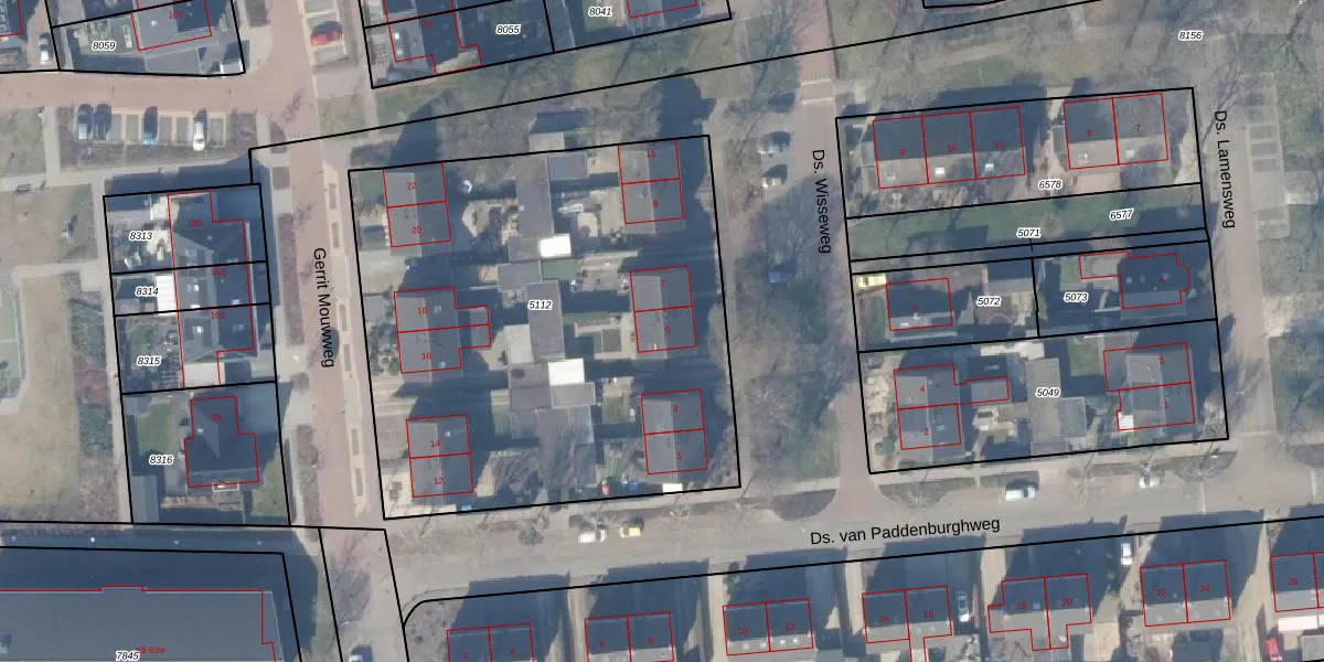 Het perceel waarop Ds. Wisseweg 5 staat heeft een oppervlakte van 2890 m². Dit is een zeer groot perceel. De perceeloppervlakte wordt geregistreerd door het Kadaster. Gedetailleerde informatie over de maten van dit perceel kunt u vinden in het rapport Kadastrale kaart met maatvoering van Ds. Wisseweg 5.