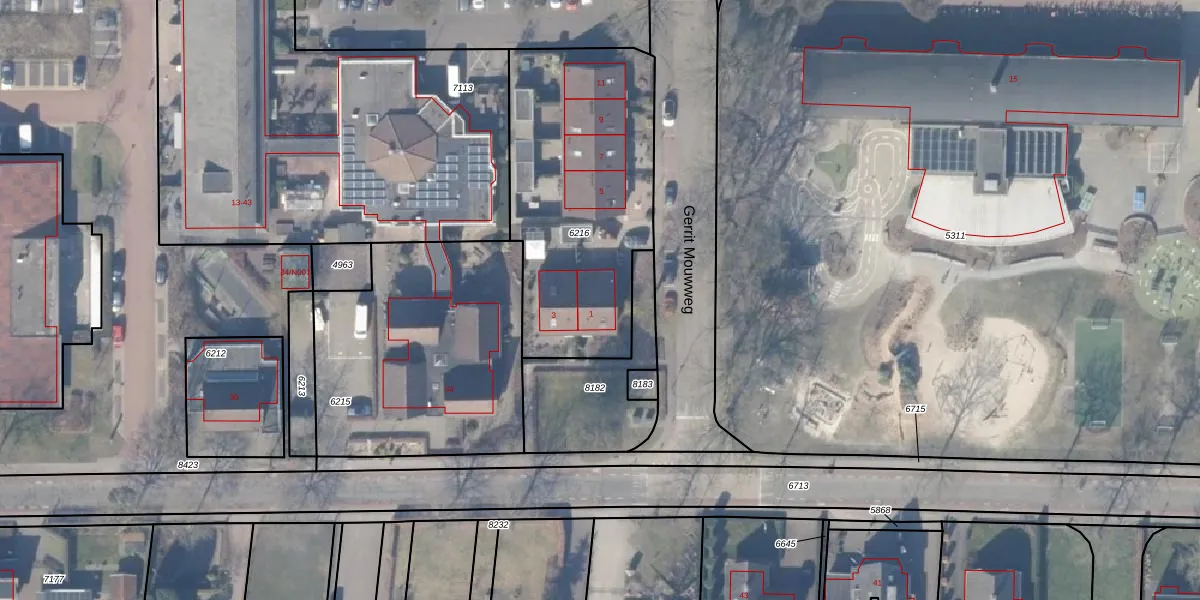 Gerrit Mouwweg 1 is gelegen op kadastraal perceel NST01F6216. Deze kadastrale aanduiding is uniek en wordt gebruikt door het Kadaster om eigendomsrechten en andere zakelijke rechten vast te leggen. Het perceel maakt onderdeel uit van de kadastrale gemeente Nunspeet.