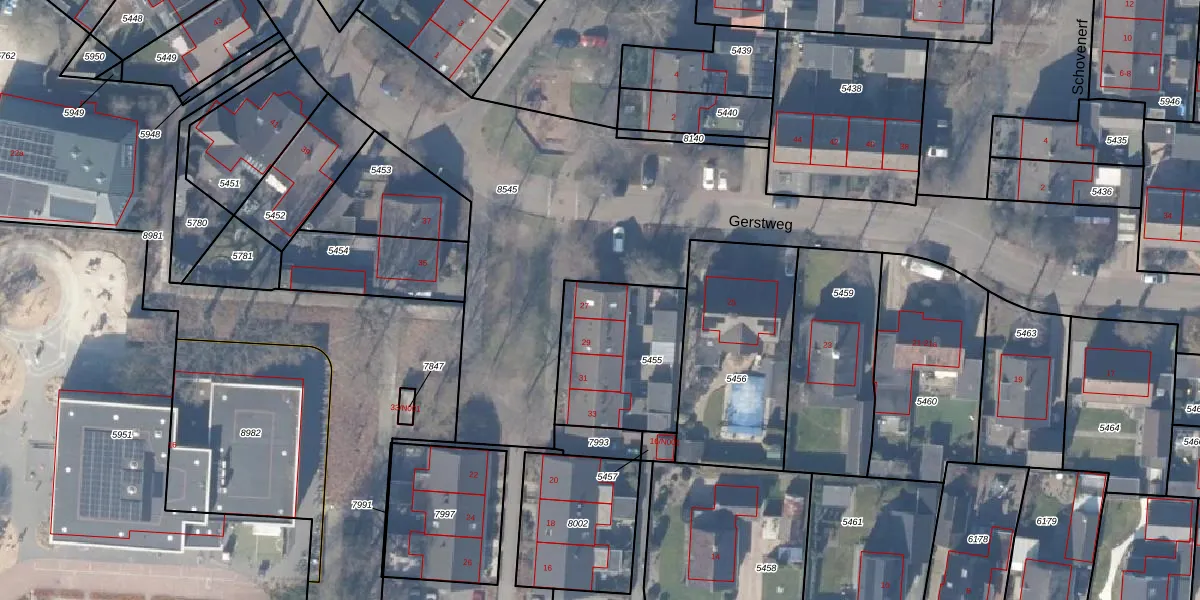 Het perceel waarop Gerstweg 27 staat heeft een oppervlakte van 495 m². Dit is een groot perceel. De perceeloppervlakte wordt geregistreerd door het Kadaster. Gedetailleerde informatie over de maten van dit perceel kunt u vinden in het rapport Kadastrale kaart met maatvoering van Gerstweg 27.