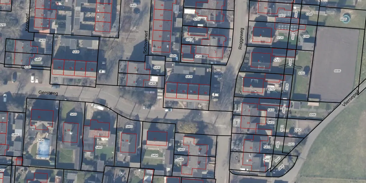 Het perceel waarop Gerstweg 32 staat heeft een oppervlakte van 645 m². Dit is een groot perceel. De perceeloppervlakte wordt geregistreerd door het Kadaster. Gedetailleerde informatie over de maten van dit perceel kunt u vinden in het rapport Kadastrale kaart met maatvoering van Gerstweg 32.