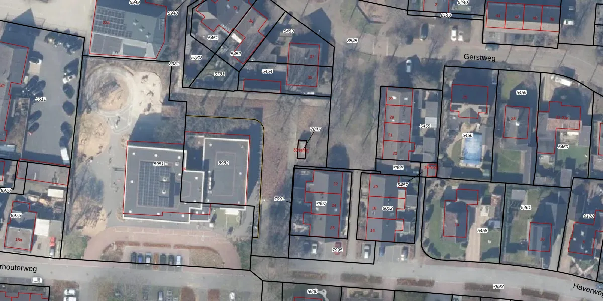 Het perceel waarop Gerstweg 33-N001 staat heeft een oppervlakte van 15 m². Dit is een klein perceel. De perceeloppervlakte wordt geregistreerd door het Kadaster. Gedetailleerde informatie over de maten van dit perceel kunt u vinden in het rapport Kadastrale kaart met maatvoering van Gerstweg 33-N001.