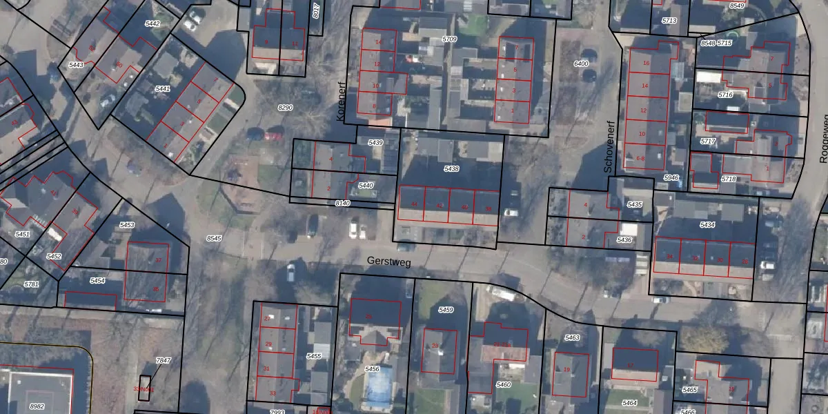 Het perceel waarop Gerstweg 44 staat heeft een oppervlakte van 696 m². Dit is een groot perceel. De perceeloppervlakte wordt geregistreerd door het Kadaster. Gedetailleerde informatie over de maten van dit perceel kunt u vinden in het rapport Kadastrale kaart met maatvoering van Gerstweg 44.