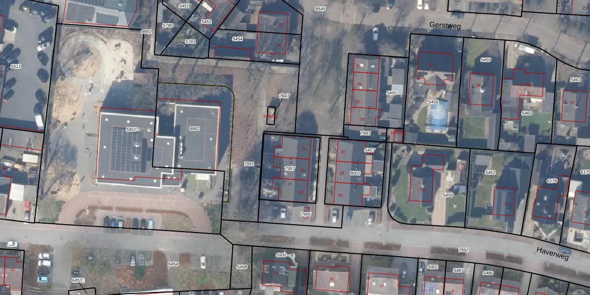 Het perceel waarop Haverweg 22 staat heeft een oppervlakte van 427 m². Dit is een groot perceel. De perceeloppervlakte wordt geregistreerd door het Kadaster. Gedetailleerde informatie over de maten van dit perceel kunt u vinden in het rapport Kadastrale kaart met maatvoering van Haverweg 22.