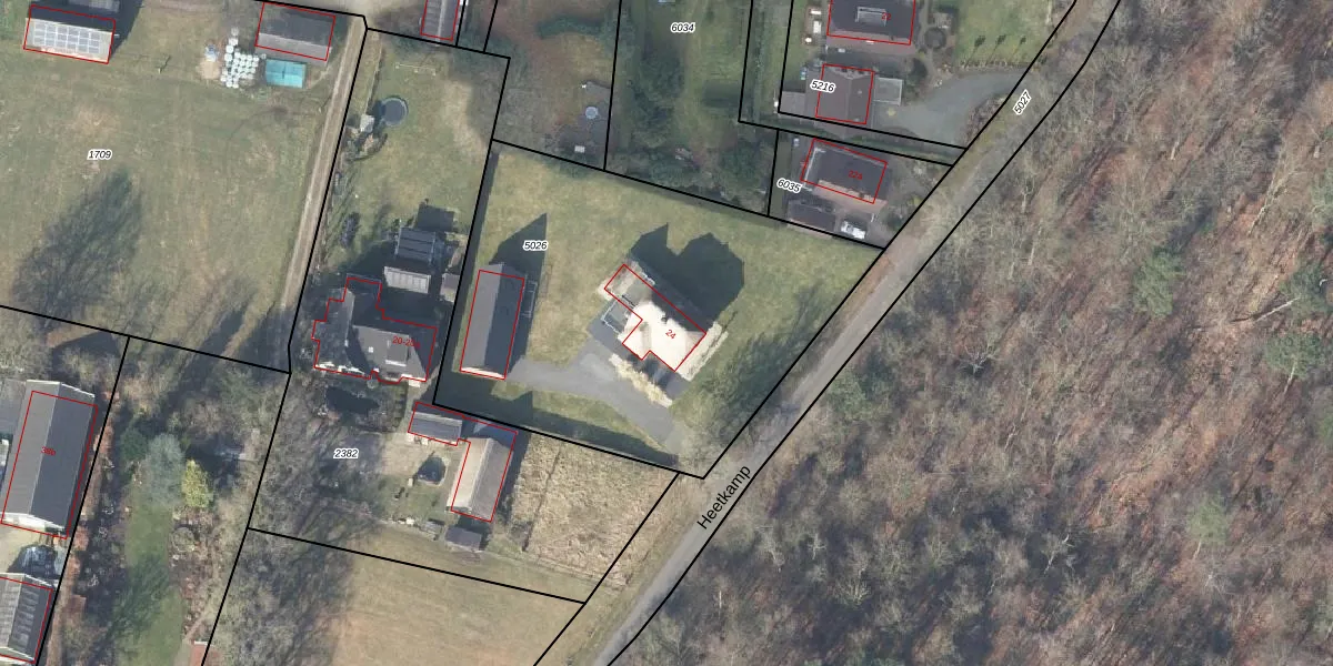 Het perceel waarop Heetkamp 24 staat heeft een oppervlakte van 2021 m². Dit is een zeer groot perceel. De perceeloppervlakte wordt geregistreerd door het Kadaster. Gedetailleerde informatie over de maten van dit perceel kunt u vinden in het rapport Kadastrale kaart met maatvoering van Heetkamp 24.