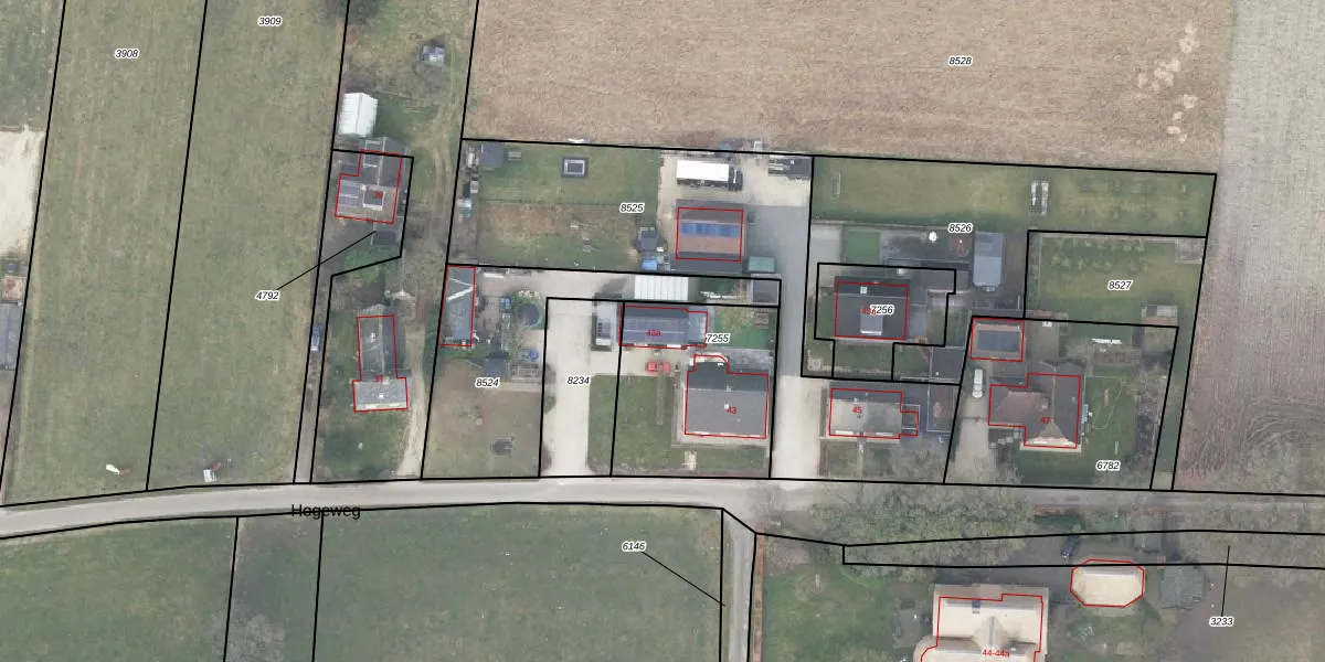 Het perceel waarop Hogeweg 43-a staat heeft een oppervlakte van 620 m². Dit is een groot perceel. De perceeloppervlakte wordt geregistreerd door het Kadaster. Gedetailleerde informatie over de maten van dit perceel kunt u vinden in het rapport Kadastrale kaart met maatvoering van Hogeweg 43-a.