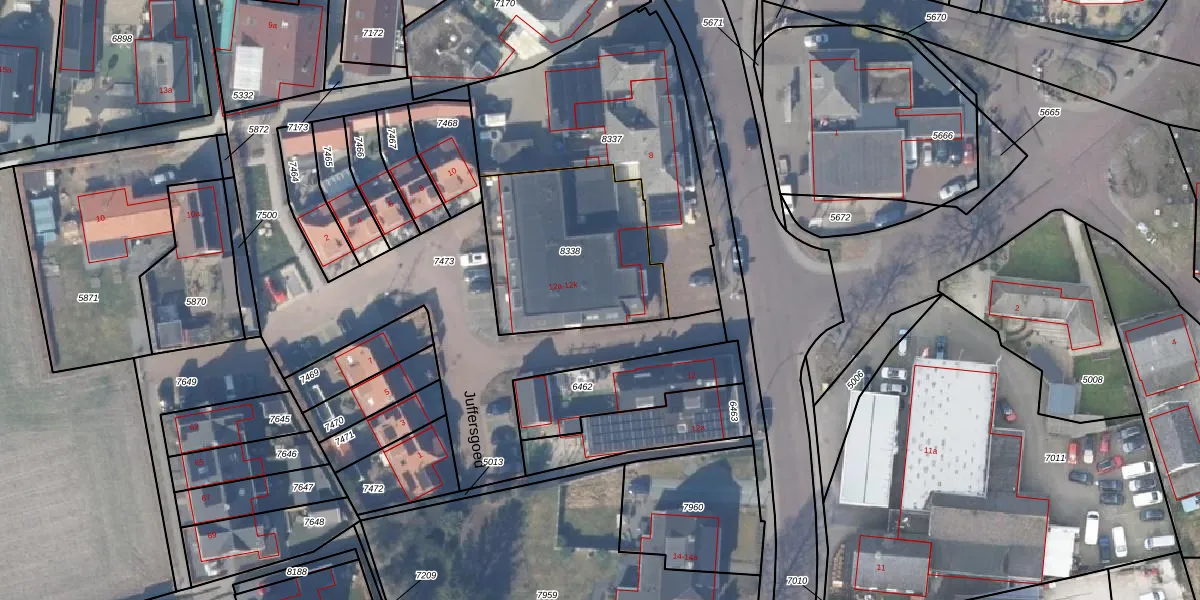 Het perceel waarop Juffersgoed 12-f staat heeft een oppervlakte van 721 m². Dit is een groot perceel. De perceeloppervlakte wordt geregistreerd door het Kadaster. Gedetailleerde informatie over de maten van dit perceel kunt u vinden in het rapport Kadastrale kaart met maatvoering van Juffersgoed 12-f.