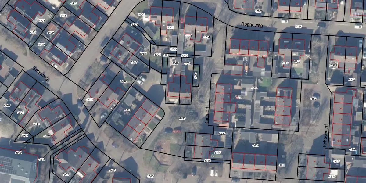 Het perceel waarop Korenerf 11 staat heeft een oppervlakte van 175 m². Dit is een middelgroot perceel. De perceeloppervlakte wordt geregistreerd door het Kadaster. Gedetailleerde informatie over de maten van dit perceel kunt u vinden in het rapport Kadastrale kaart met maatvoering van Korenerf 11.