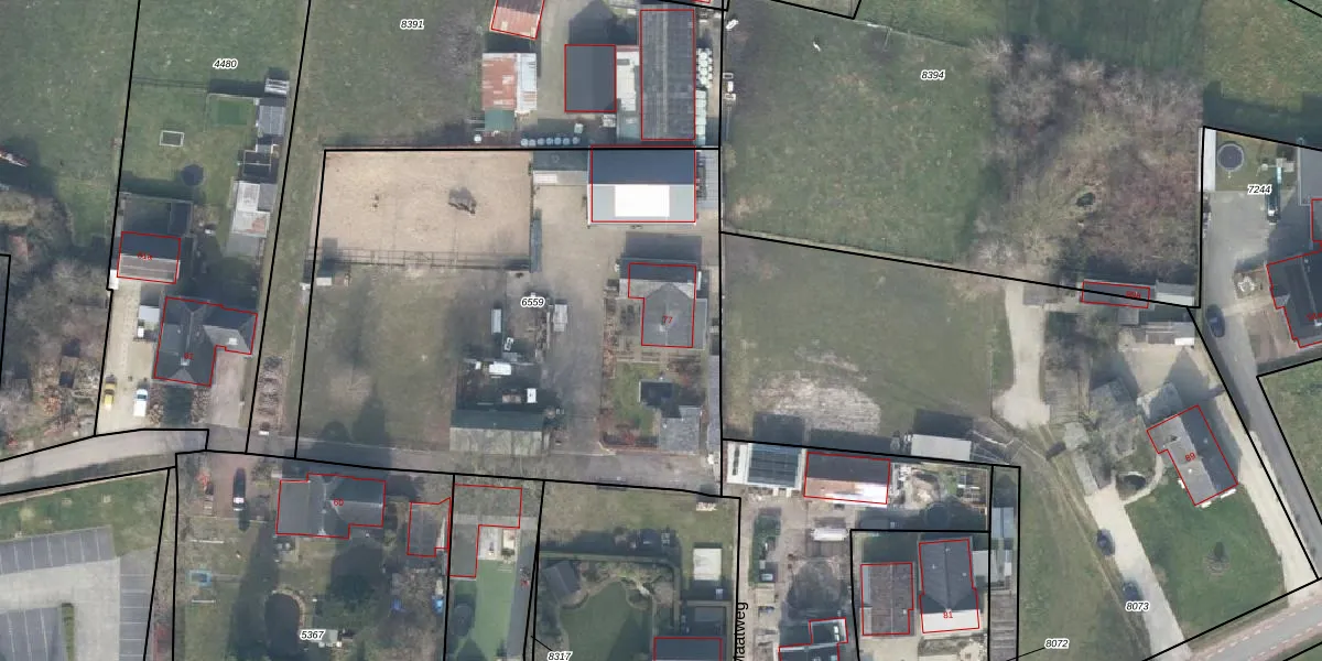 Het perceel waarop Maatweg 77 staat heeft een oppervlakte van 3270 m². Dit is een zeer groot perceel. De perceeloppervlakte wordt geregistreerd door het Kadaster. Gedetailleerde informatie over de maten van dit perceel kunt u vinden in het rapport Kadastrale kaart met maatvoering van Maatweg 77.