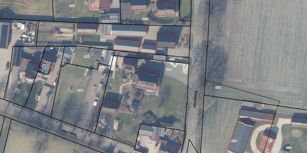 Merelweg 9 is gelegen op kadastraal perceel NST01F6376. Deze kadastrale aanduiding is uniek en wordt gebruikt door het Kadaster om eigendomsrechten en andere zakelijke rechten vast te leggen. Het perceel maakt onderdeel uit van de kadastrale gemeente Nunspeet.