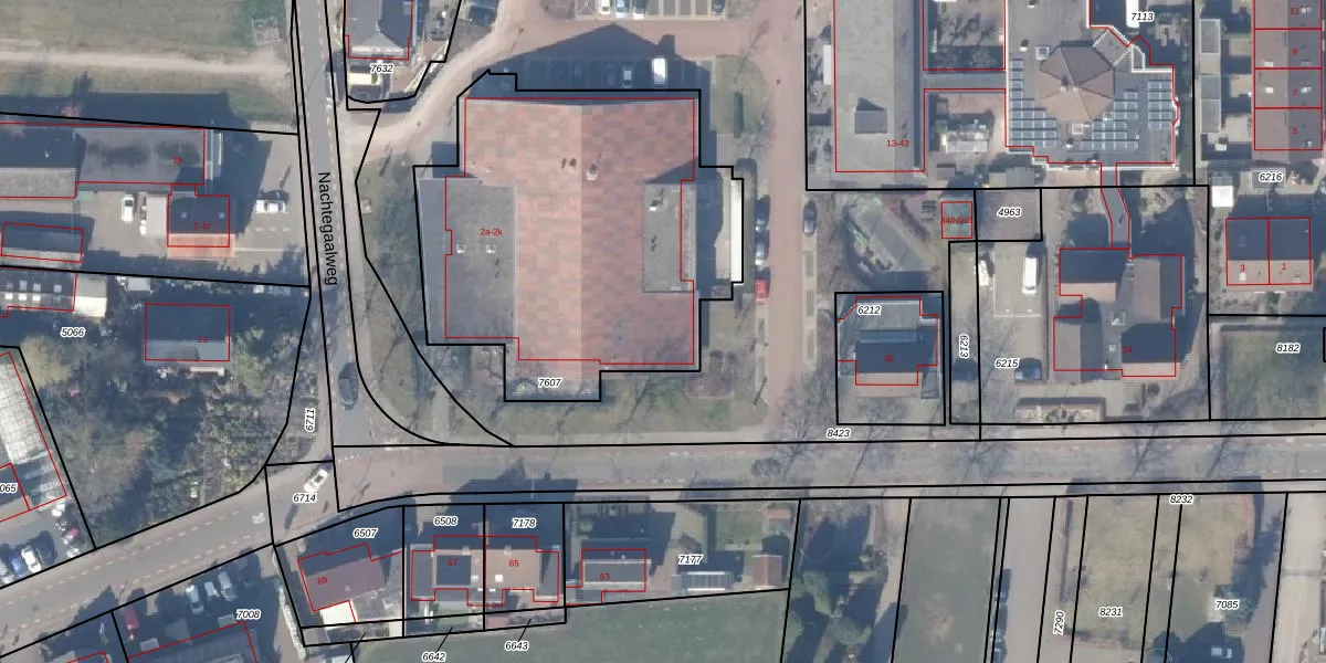 Het perceel waarop Nachtegaalweg 2-f staat heeft een oppervlakte van 1875 m². Dit is een zeer groot perceel. De perceeloppervlakte wordt geregistreerd door het Kadaster. Gedetailleerde informatie over de maten van dit perceel kunt u vinden in het rapport Kadastrale kaart met maatvoering van Nachtegaalweg 2-f.