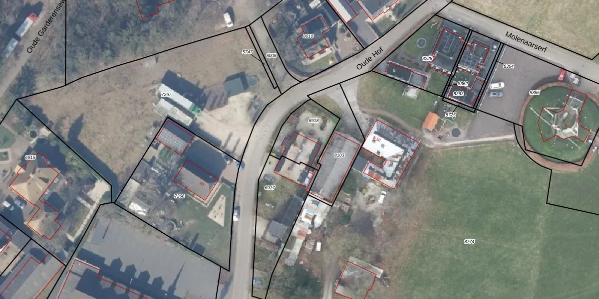 Het perceel waarop Oude Hof 7 staat heeft een oppervlakte van 315 m². Dit is een groot perceel. De perceeloppervlakte wordt geregistreerd door het Kadaster. Gedetailleerde informatie over de maten van dit perceel kunt u vinden in het rapport Kadastrale kaart met maatvoering van Oude Hof 7.